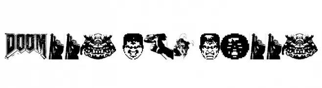 A display font composed of game-inspired bitmap illustrations and character faces.